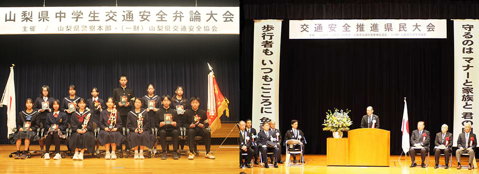 (一財)山梨県交通安全協会は、おかげさまで令和6年4月に創立100年を迎えました。これからも、県民の皆様とともに、県内の交通秩序の確立と交通安全の実現のために協会を挙げて取り組みます。